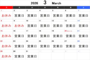 2026年1月の営業予定です 2025年12月18日